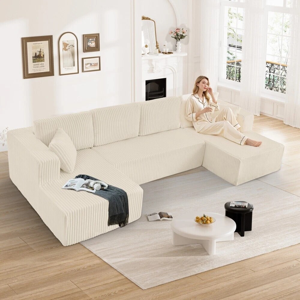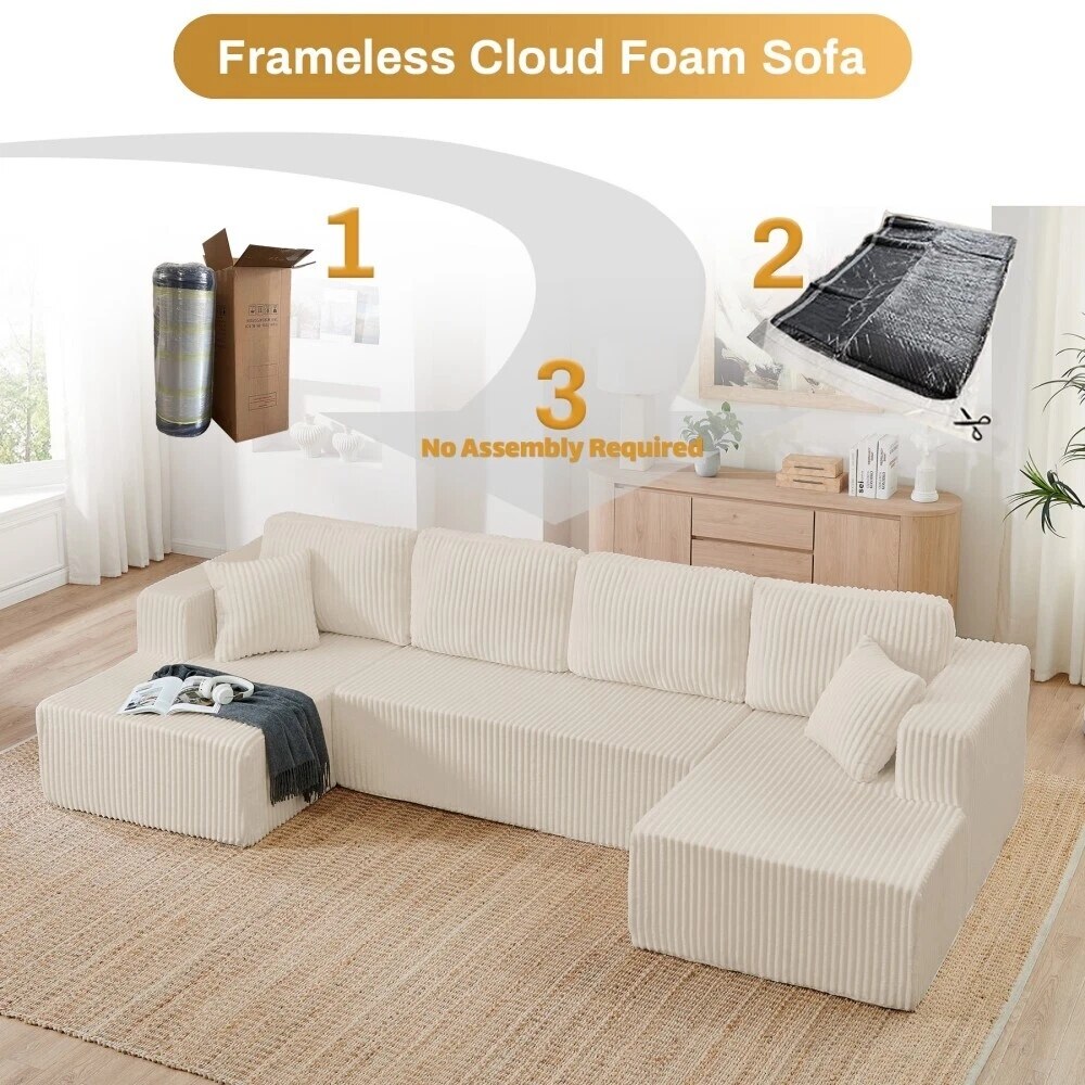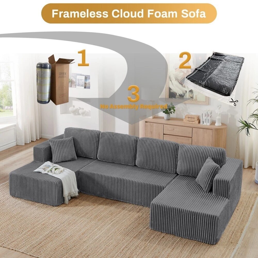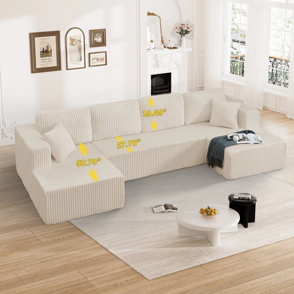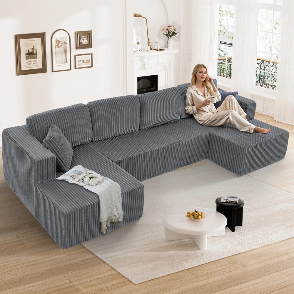 132'' U-Shape Modular Corduroy Sectional Sofa, Contemporary Boneless Couch, Assembly-Free 9917306