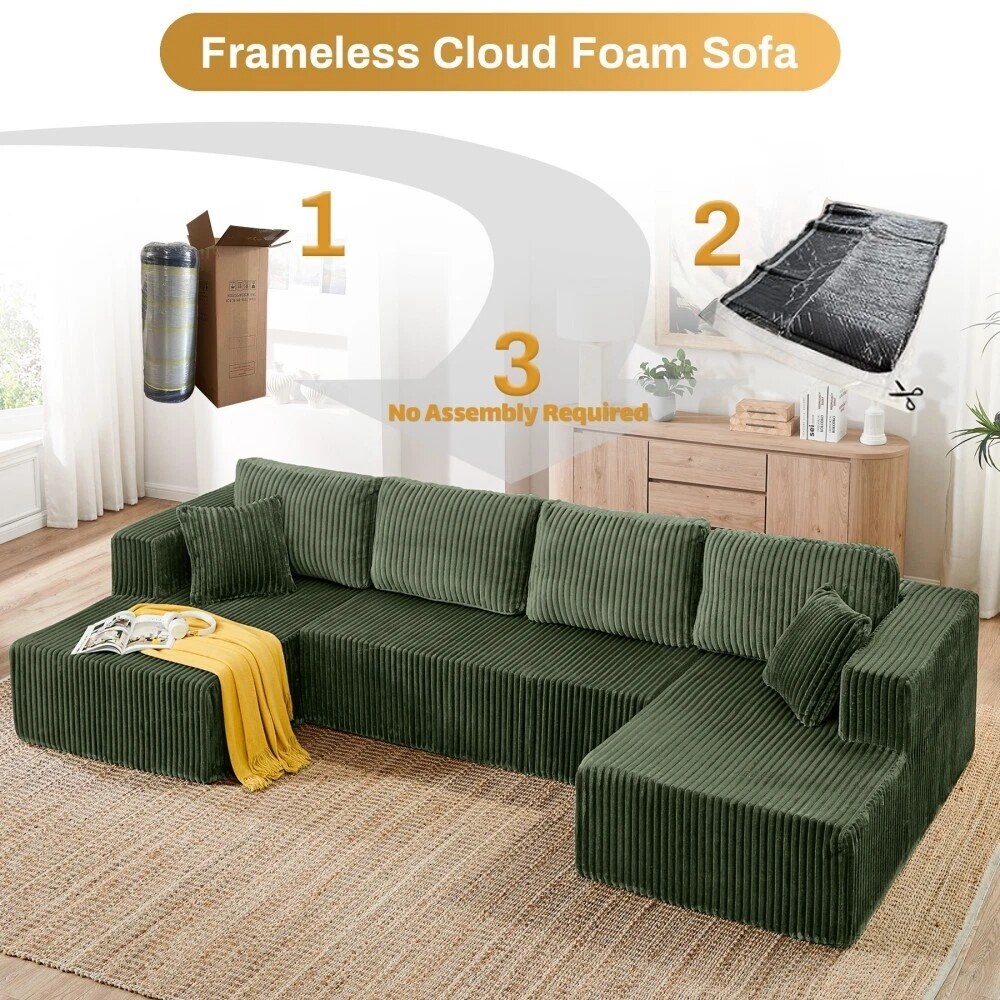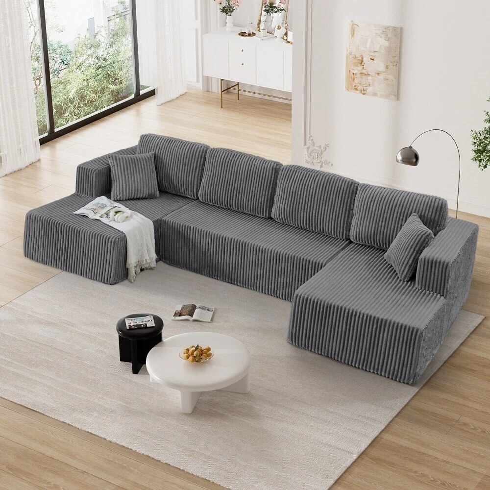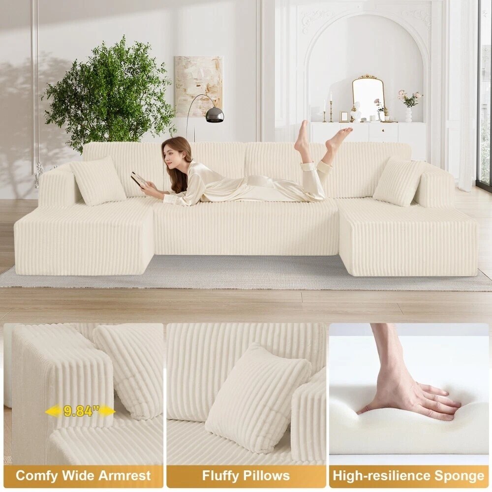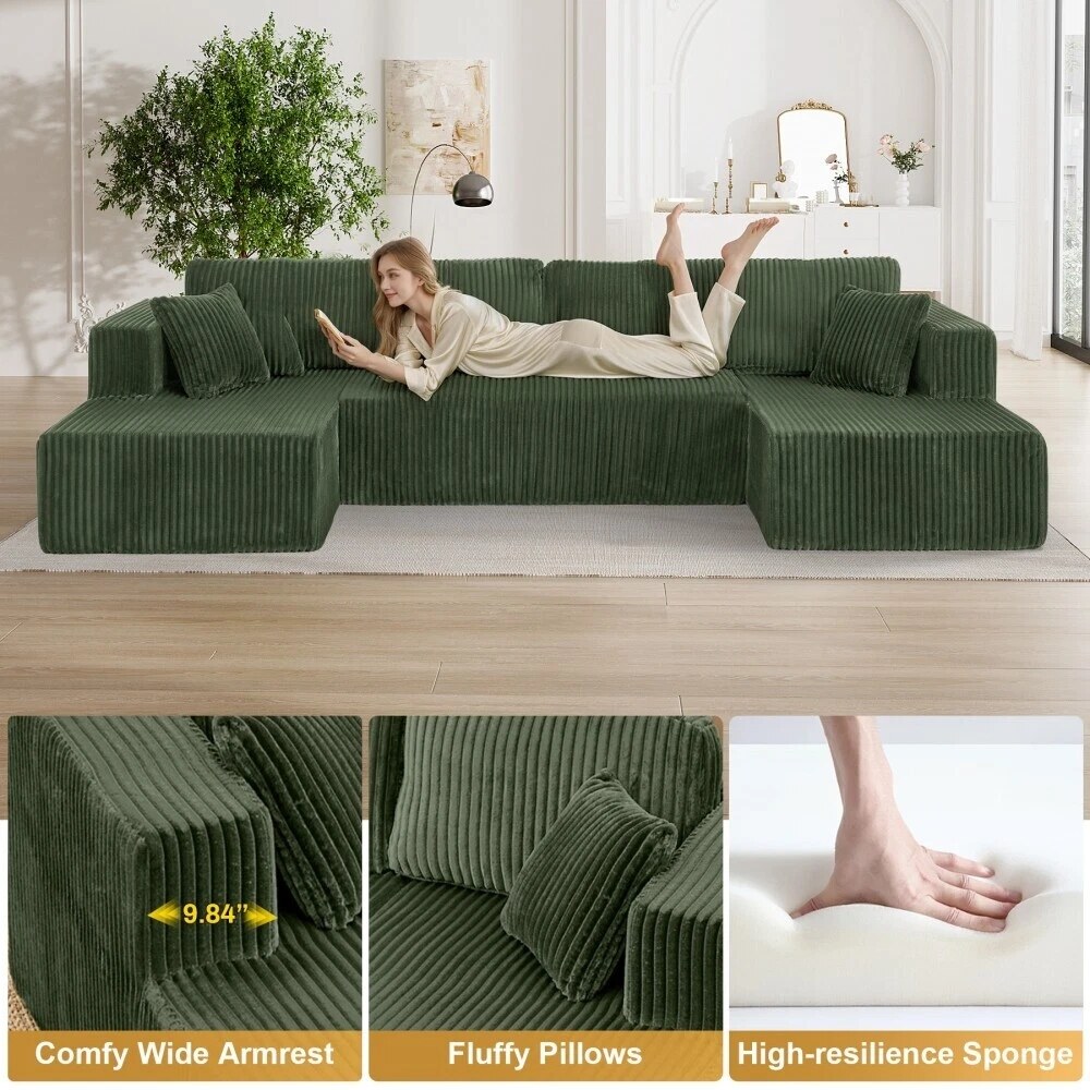 132'' U-Shape Modular Corduroy Sectional Sofa, Contemporary Boneless Couch, Assembly-Free 9917306