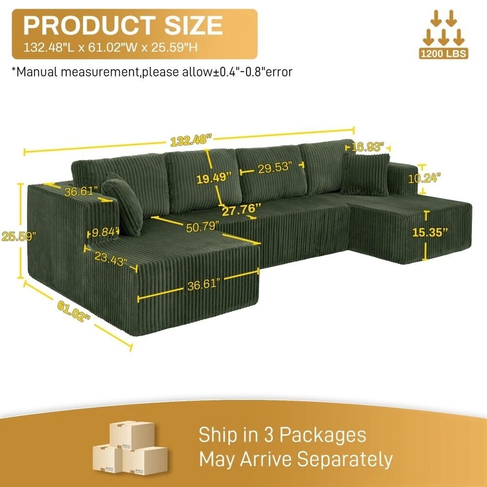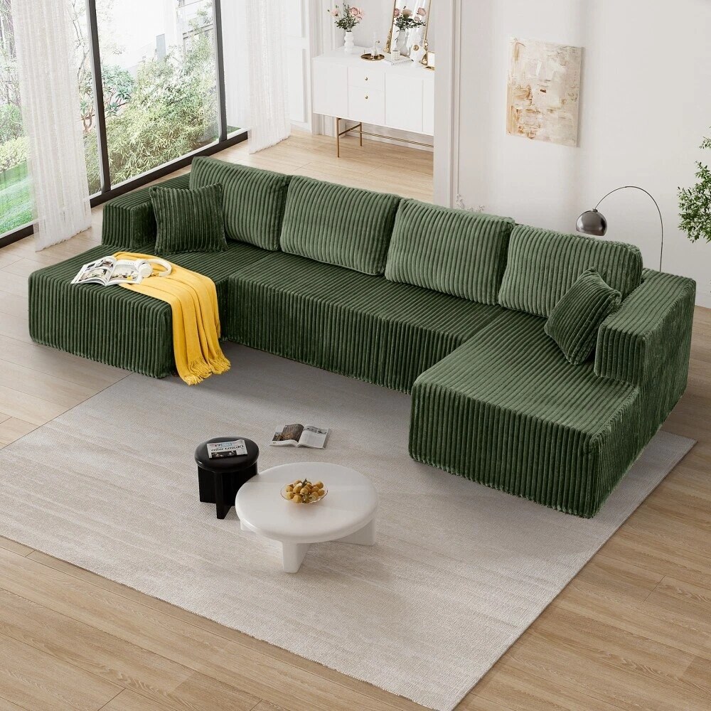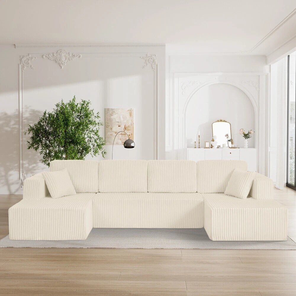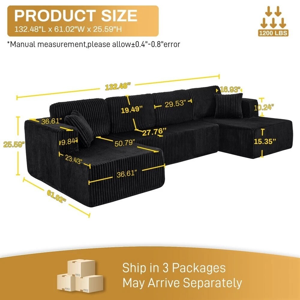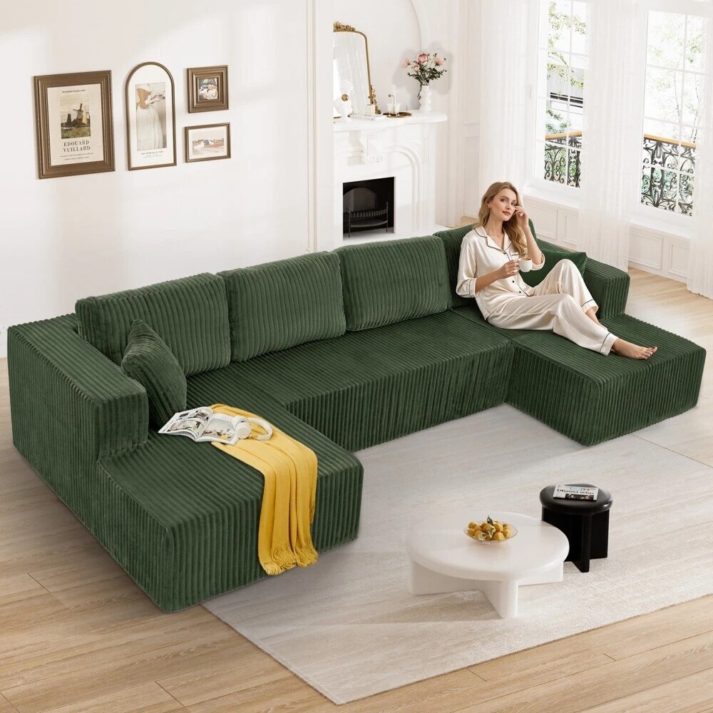 132'' U-Shape Modular Corduroy Sectional Sofa, Contemporary Boneless Couch, Assembly-Free 9917306