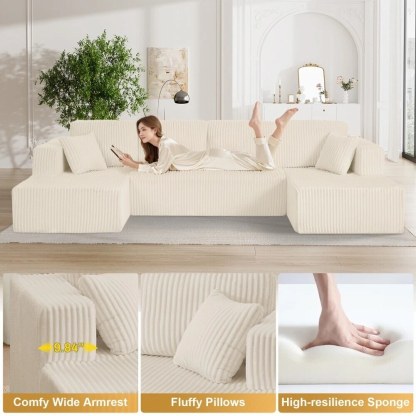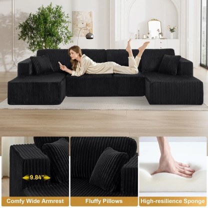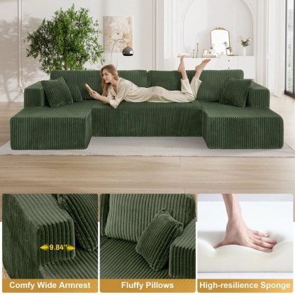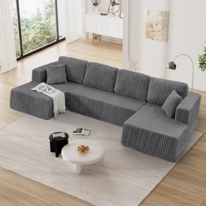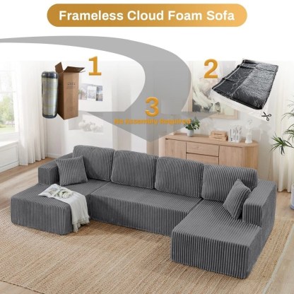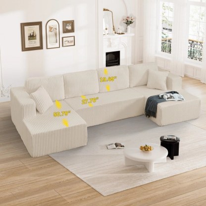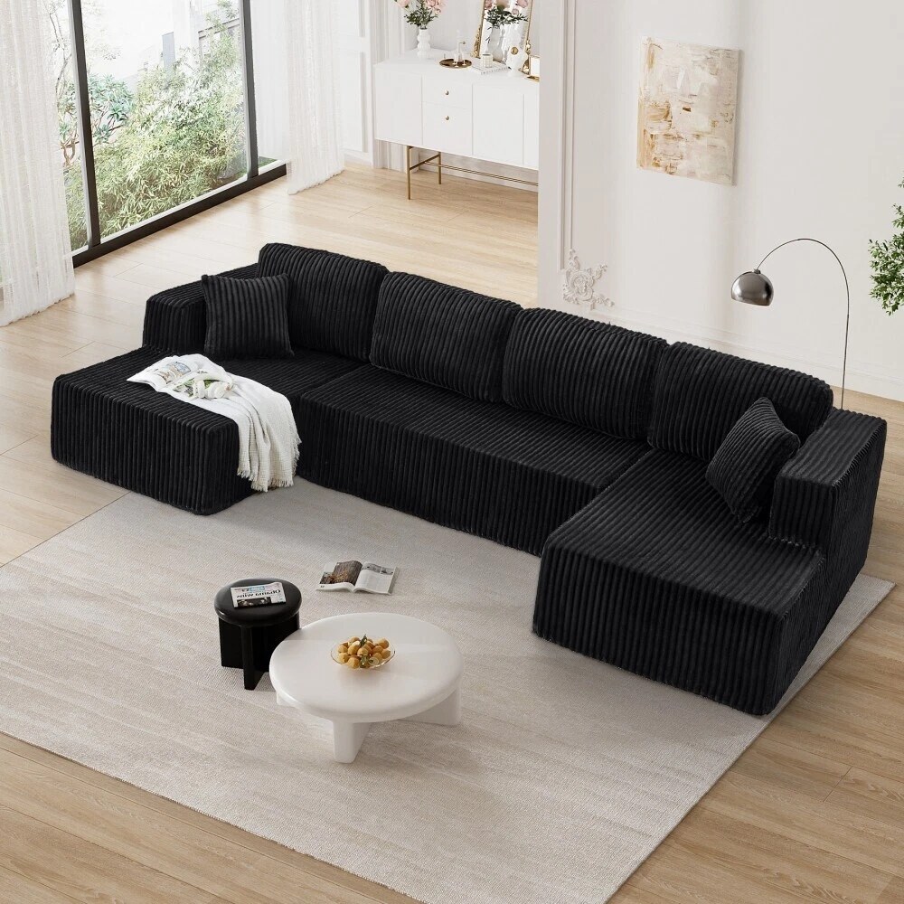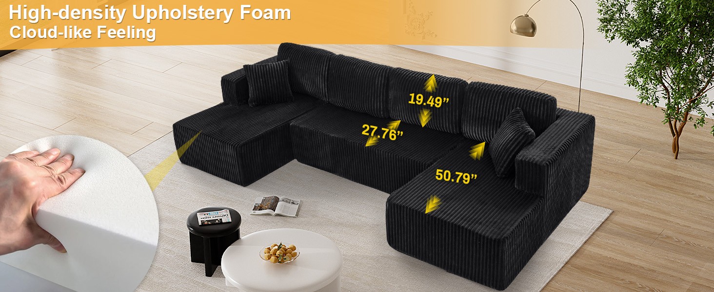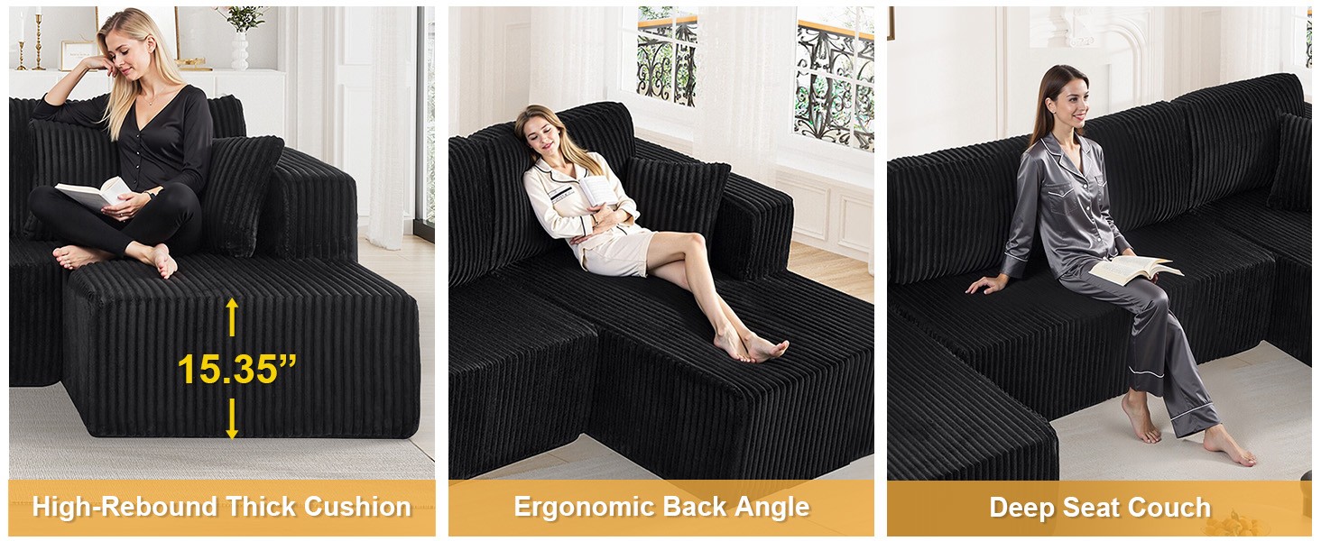 - Plush Corduroy Couch Sectional: Our boneless couch sectional combines luxuriously soft comfort with elegant texture. The breathable, stain-resistant fabric offers coziness that's easy to maintain. Experience cloud-like comfort with a sophisticated sheen that elevates any space