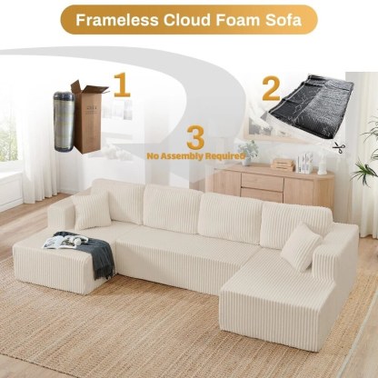 - Cloud Modular Sectional Sofa: This u shape boneless couch fits suitablely against walls, while its modularity allows endless configurations. Transform it from a plush movie-night couch to a spacious sleeper in seconds, versatile comfort meets modern style