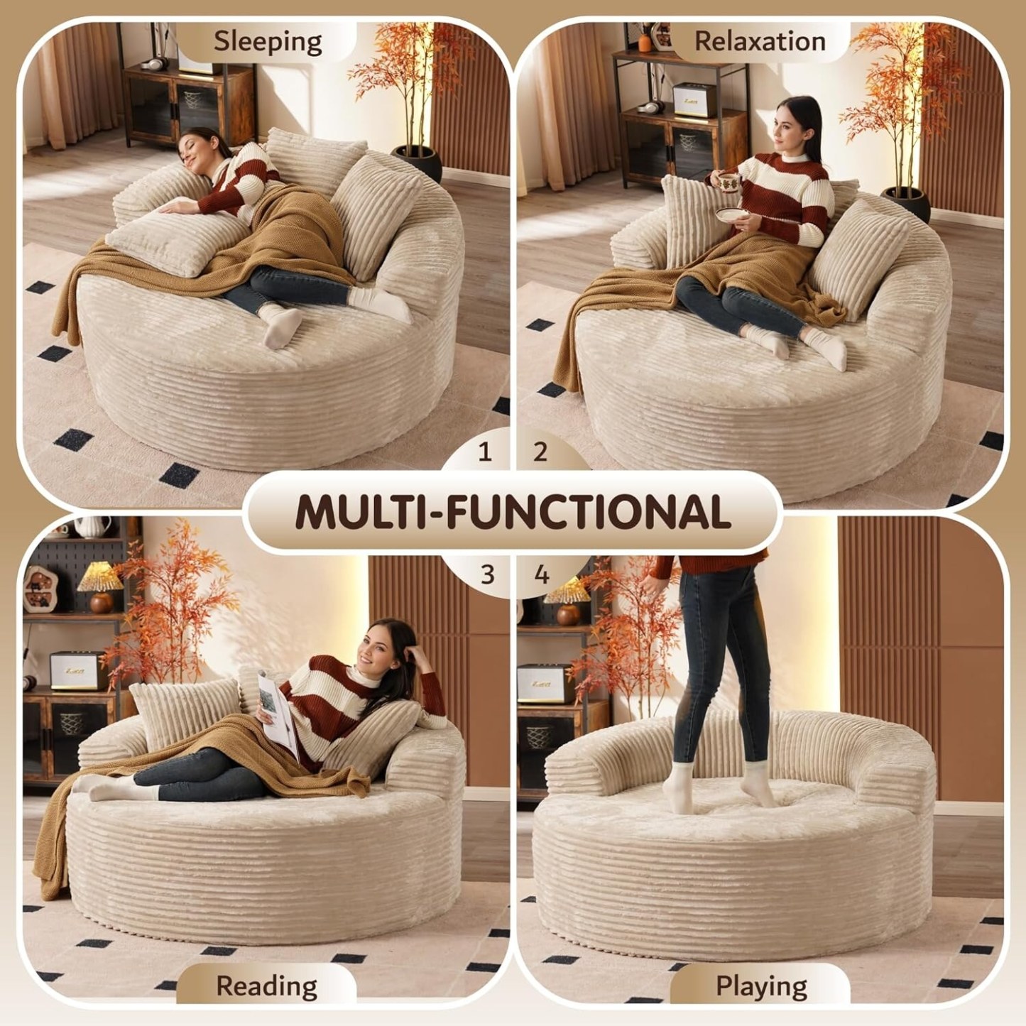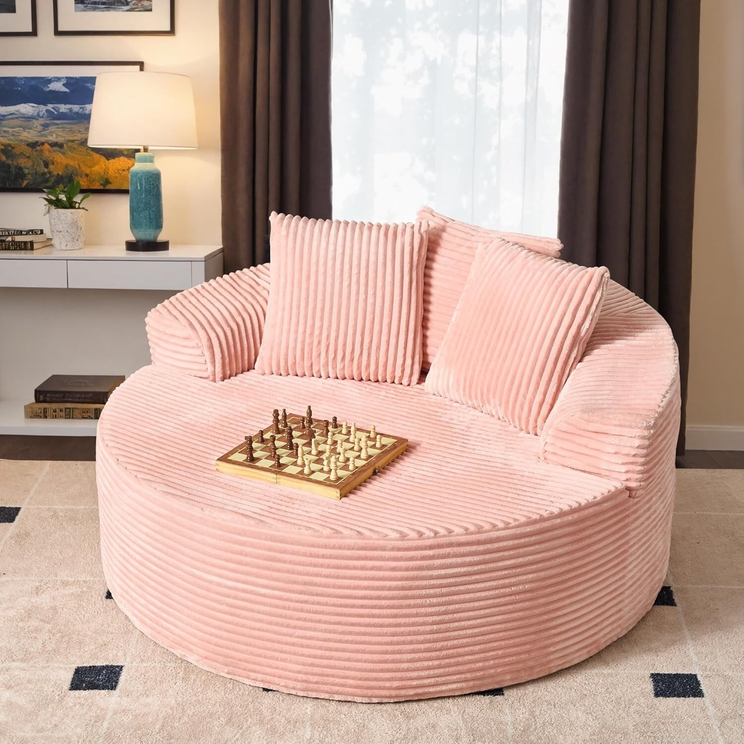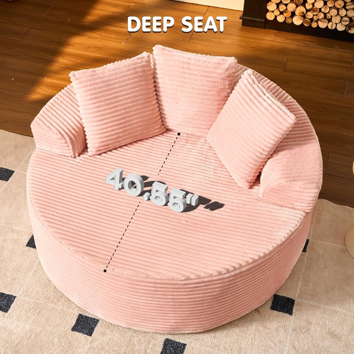- Oversized Leisure Round Chair: Equipped with 10-inch wide square arms, providing loose and leisurely arm support. The 58" W*40" D seating is spacious enough for curling up, reading a book, or napping on the sofa.
