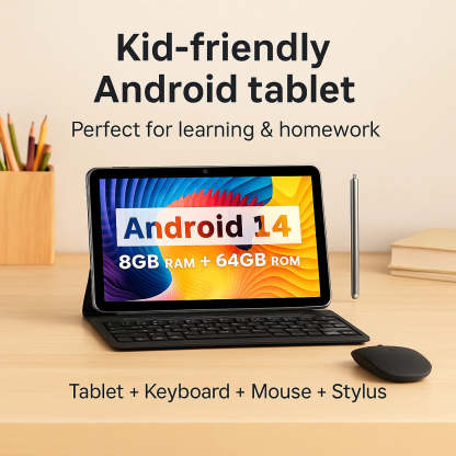 NovaPad 14 is a complete Android productivity bundle designed to help you work, browse, learn, and stay connected from anywhere. With its 10.1-inch HD display, detachable keyboard, wireless mouse, and stylus, you get everything you need in one compact setup.